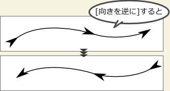 [Inkscapeの設定]の[ノード]の項目で、[アウトラインでパスの方向を表示する]にチェックを入れると、パスのアウトラインにパスの向きを示す矢印を表示させることができます。