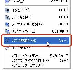 (鉛筆ツール)で描いたパスや、ビットマップ画像をトレースしてできたパスなどは、ノードがたくさんできてしまいがちです。そんなときは、パスを選択後メニューバーの[パス]メニューから