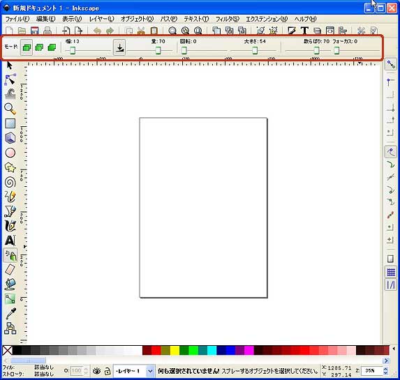 [散らばり]は、値が小さいほど、マウスドラッグの軌跡に忠実にオブジェクトをスプレーしていきます。