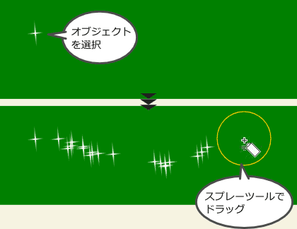 選択したオブジェクトを描画上にスプレーする機能です。