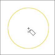(スプレーツール)に切り替えると、マウスポインターの周囲にオレンジ色の円が現れます。