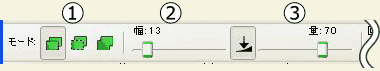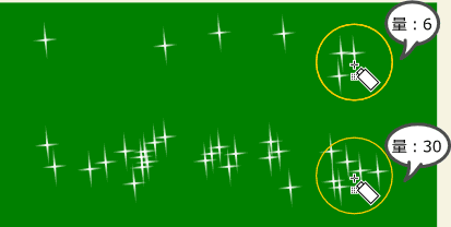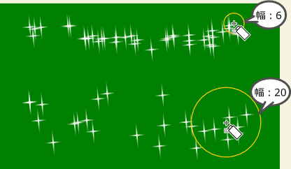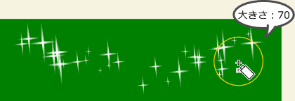大きさの変化量を設定します。例えば、大きさ:70に設定した場合、100%から170%までの大きさでランダムに変化させます。