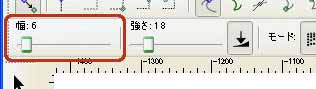 ツールコントロールバーの[幅]のスライダーを左右に動かし、円のサイズを設定します。