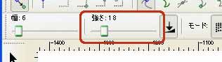 ツールコントロールバーの[強さ]のスライダーを左右に動かし、効果の強さを設定します。