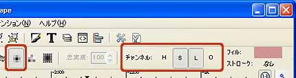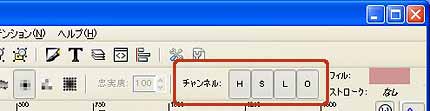 ツールコントロールバーの[チャンネル]の項目より、H(色相)S(彩度)L(明度)O(透明度)の各ボタンをON/OFFを切り替えることにより、それぞれを個別に適用することができます。