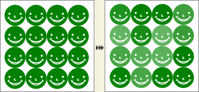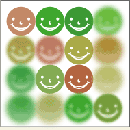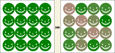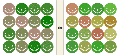 例えば、下記の左側の緑の顔のオブジェクトを全て選択後、