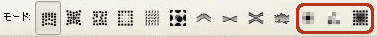 (微調整ツール)のツールコントロールバーの[モード]の欄にある下記の赤枠内のコマンドは色の設定に関するコマンドです。フィルやストロークに微妙な変化を加えます。