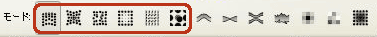 (微調整ツール)のツールコントロールバーの[モード]の欄にある、下記の赤枠内のコマンドは、オブジェクトの配置に関するモードです。