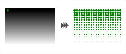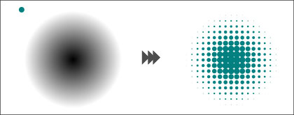 Photoshopのカラーハーフトーンフィルターを使ったようなドットデザインの作り方です。