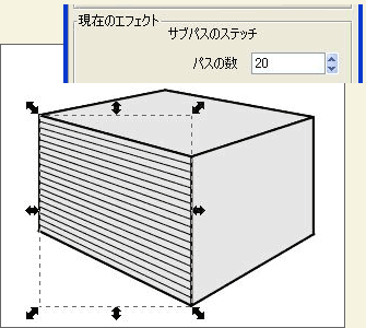 これは、[パスエフェクト機能]の一つ、[サブパスのステッチ]というエフェクトを使います。