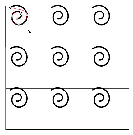 [タイルクローンを作成]を使って唐草模様を描きます。唐草の曲線は、[スピロスプライン]を使うと簡単に描けます。
