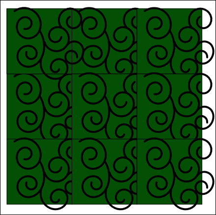 ただし、このような塗りの面積が多い柄の場合、この方法では下記のようなタイル間のギャップ(白い線)が目立ってしまうことがあります。