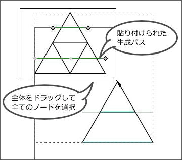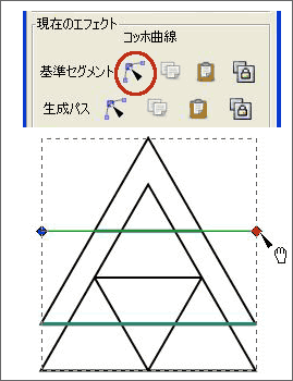 パスエフェクト機能の[コッホ曲線]を使って、下記の『シェルピンスキーの三角形』を作ってみます。 『シェルピンスキーの三角形』はフラクタル図形として有名なのだそうです。