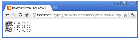 アクセスURL:http://localhost/myproj_basic/ch05exercise/practice0501.php