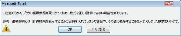 このダイアログ ボックスは、ワークシート内のどこかに循環参照を含むセルがあることを示します。