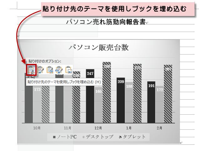 1. 貼り付け先のテーマを使用しブックを埋め込む