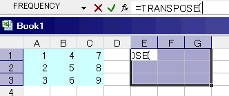 そして=TRANSPOSE( と入力します。