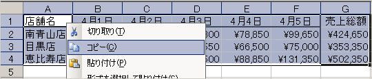 (2)反転表示された状態で右クリック、メニューから「コピー」を選択します。