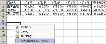 メニューから「形式を選択して貼り付け」を選択します。