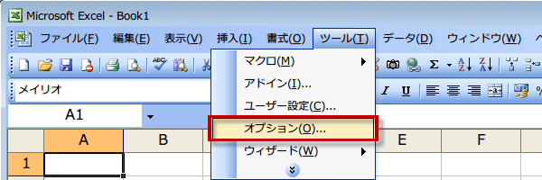 (1)メニューから「ツール」→「オプション」を選択します。