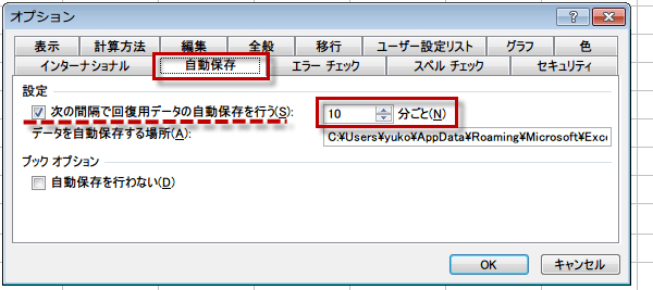C:\Users\ユーザ名\AppData\Roaming\Microsoft\Excel\となっていますが、もちろん変更することもできます。