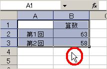 (1)移動させたいデータをドラッグで範囲選択します。ここでは、「A1」から「B3」を選択しました。