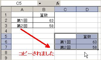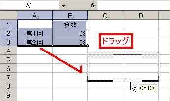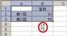 (4) マウス操作でコピーすることもできます。図のように、 ドラッグで範囲選択したあと、セルの枠線にカーソルを近づけ、