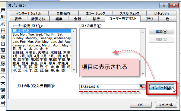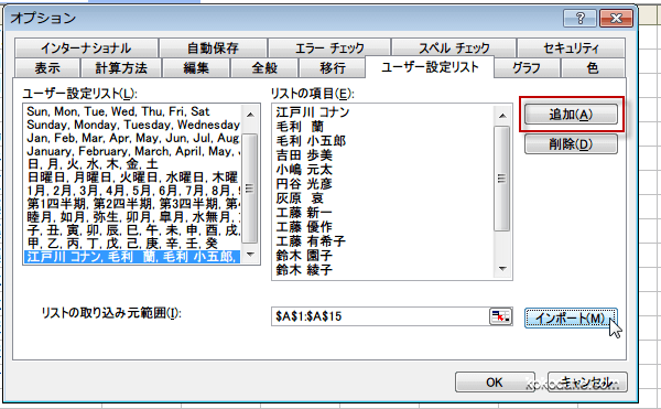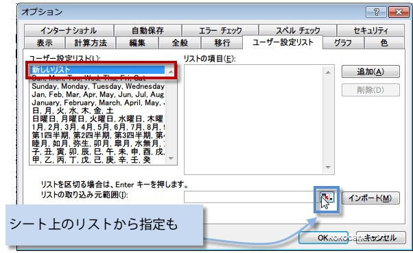 ユーザー設定リストは、Excelバージョン:で有効です。