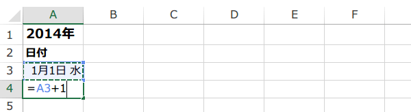 この数式の意味は、A2に1を足した日付ということです。