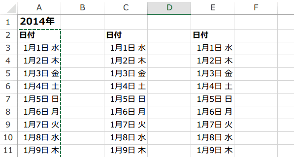 A列を2月分以降を作成したい位置にコピーします。