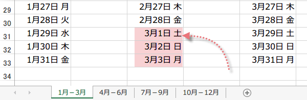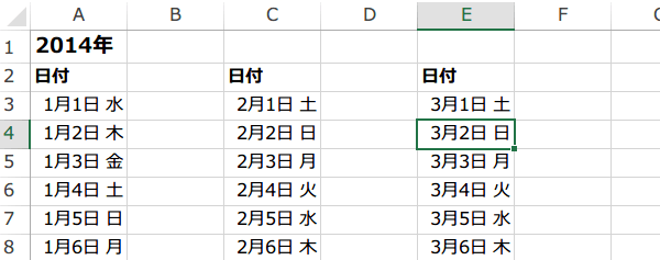 (5)今度は、1月2日以降を作成します。