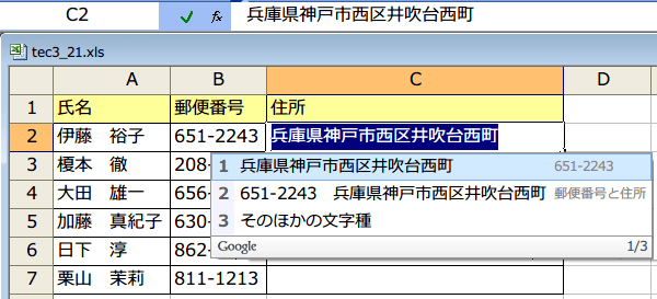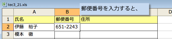 郵便番号を入力するだけで簡単に住所を入力したい〜エクセルの中級技3