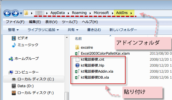 ユーザー アドインフォルダに入れます。