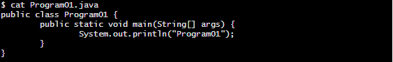 クローンで作成したディレクトリに移動して、現在のProgram01.javaのコードを見る。