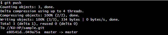 次にgit pushコマンドで変更をリモート・リポジトリに反映させる。