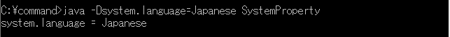 Javaコマンドを-Dオプションで実行すると、システム・プロパティsystem.languageにJapaneseが設定されている。