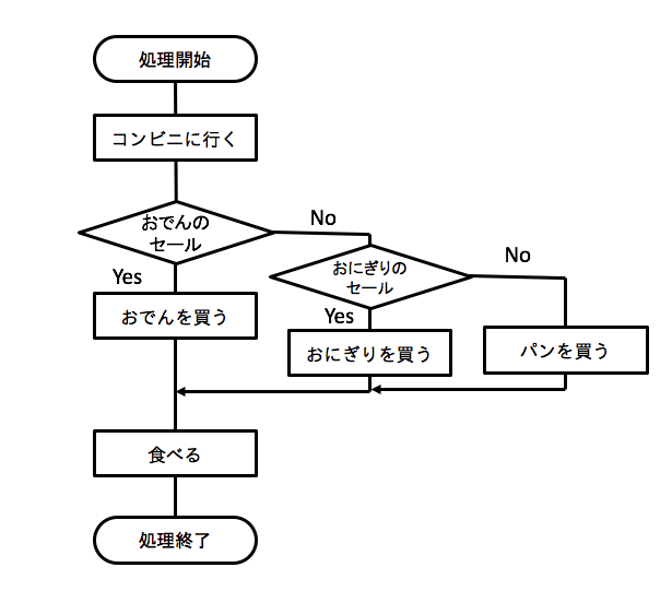 コンビニに行って、おでんがセールだったらおでんを、おでんがセールでなくておにぎりのセール中であればおにぎりを、いずれでもなければパンを買うような処理だ。