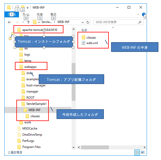 このページではTomcatを例にフォルダ構成と、アプリケーションをどのようにおいて動かしていくかを見ていこう。