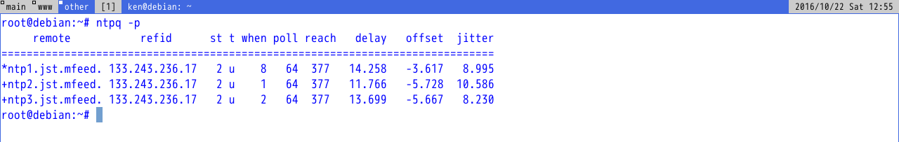 自分でNTPサーバを構築することも可能だ。各ディストリビューションでntpのパッケージが用意されているはずだ。それぞれの方法でインストールしよう。例えばDebianの場合