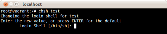 ユーザーvagrantでログイン中にchshコマンドのコマンド名のみを指定すると、シェルを変更するユーザーはvagrantとなる。