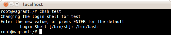 現在のログインしているユーザーvagrantのシェルが変更できた。