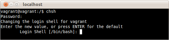 現在のログインしているユーザーvagrantのシェルを変更する場合は、次のコマンドだ。