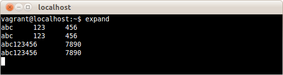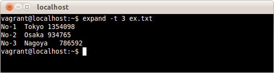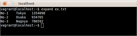 expandはタブ区切りテキストファイルのデータを揃えて表示するコマンドだ。