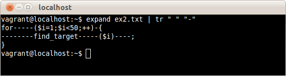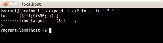 最後に、-iオプションを付与したexpandコマンドでテキストファイルex2.txtを見てみよう。