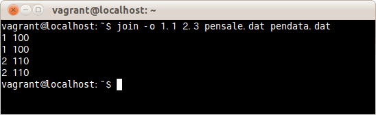 $ join -o ファイル番号.フィールド番号 ファイル名1 ファイル名2