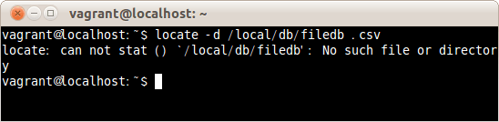 データベースファイル/local/db/filedbを使用し、データベースファイルの読み取りエラーを表示せず、csvが含まれるファイルやディレクトリを高速に検索する場合は、次のコマンドだ。