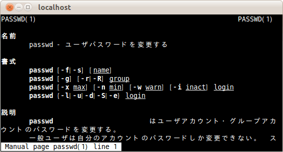 まず、passwdコマンドの日本語マニュアルが表示された。