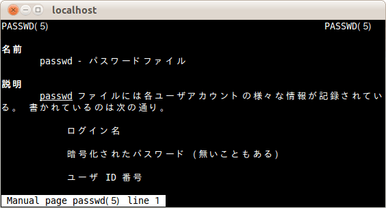 4つめの表示はpasswdファイルの日本語マニュアルだ。