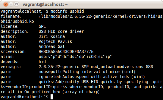 カーネルモジュールusbhidの情報を製作者のみ表示した。