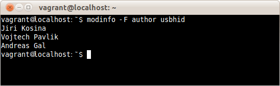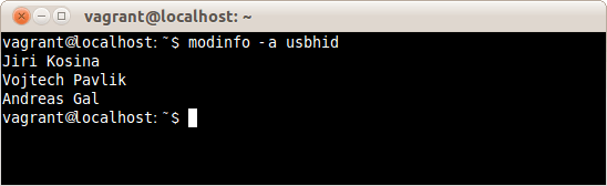 カーネルモジュールusbhidの情報をカーネルモジュールの製作者のみ表示した。